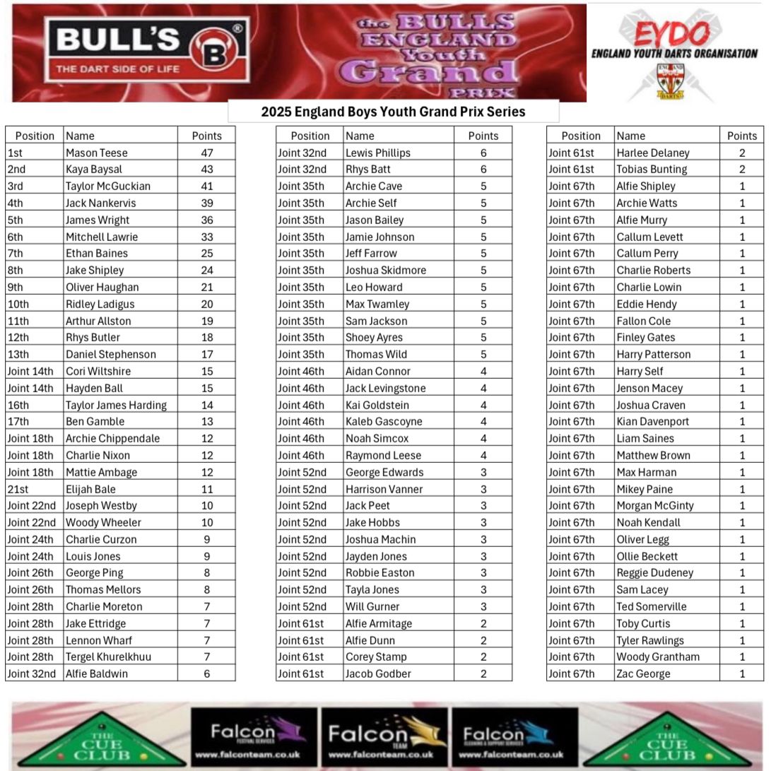 Our sincere thanks to the main sponsor Montagu Properties Services and the many donations from dart players and supporters, without which, the events would not be possible, once again a massive well done to our superb England Youth officials.